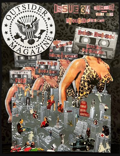 Analog collage art custom made for this issue is featured on the cover as well as throughout the pages.